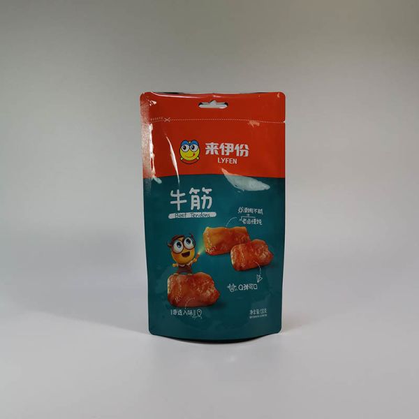 Round Corner Stand Up Pouch PET Aluminized Foil Packaging Bag With Handle For 130g Beef Tendons, Snacks